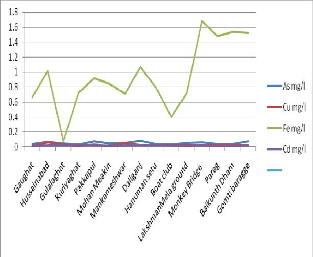 Abstract- Gomti River rises in Pilibhit District, U.P. It passesthroughdistrictofKheri,Hardoi,Sitapur,Lucknow, Barabanki, Sultanpur, Jaunpur and finally merges with Ganga. The world is struggling with a major type of pollution, both inorganic and natural. Healthy soil, calm water and calm air are the soul of life. Soil, water and air are often not soft or clean, but they pose risks to human health. Gomti receives large parts of untreated sewage, agricultural sewage, brings many pesticides, fertilizers, road wash-out bringing oil, asphalt, sediments and many kindsofheavymetals.Fromcommercialrunofftodomestic runoff, the river becomes a major landfill. After traveling approximately150miles(240km),Gomtienters Lucknow where he travels sixteen km. Its buoyancy is particularly dependent on rainfall and consequently the buoyancy of the river could be very forgiving at some point during the monsoon.The river receives large amounts of human and commercial pollution as it flows through the densely populated areas (approximately 18 million) of Uttar Pradesh. High concentrations of pollutants in the river are wreaking havoc around the Gomti and threatening its aquatic life. Before Gomti reaches Lucknow, it receives waste from Sitapur Distillery and Sugar Industry. All distillery, dairy and vegetable oil industries that discharge sewage directly into Gomti and except also household sewagearedischargedintoGomtiRiver.