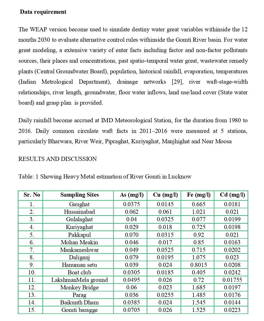 Lucknow is the capital of Uttar Pradesh. The assessment place covers the Gomti River in piece of Lucknow town of UttarPradeshliesamong80.899893to80.968180Nscope 26.886799 to 26.833321 E longitude. To absolutely examinations the Physical, Chemical Parameters and weighty metals withinside the Gomti River of Lucknow town,8extraordinarilylocationsaremoreoverselectedfor