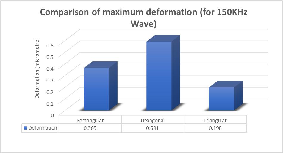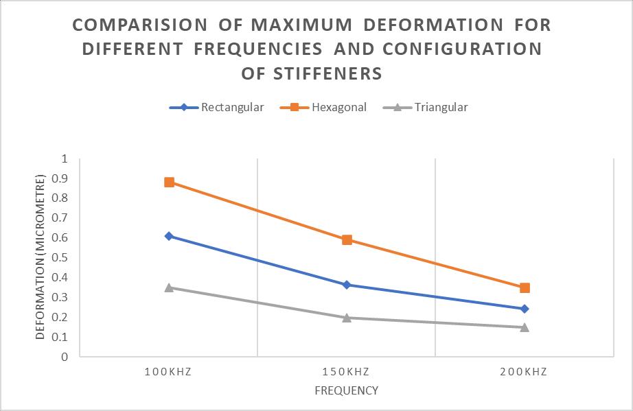 Figure-15 Comparisonofmaximumdeformationdueto fourcyclessinusoidalwaveof150KHzfrequencyfor differentconfigurationofstiffeners