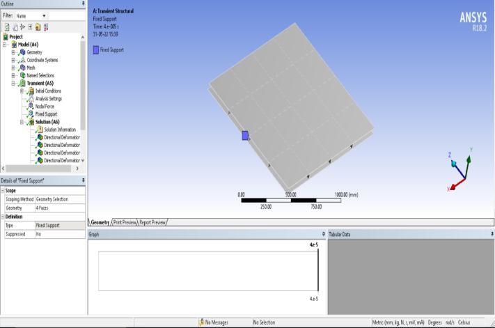 Abovefigureshowssupportsconditionsoftheplate.Fixed supports are applied on all the four sides of plate and analysisiscarriedout.