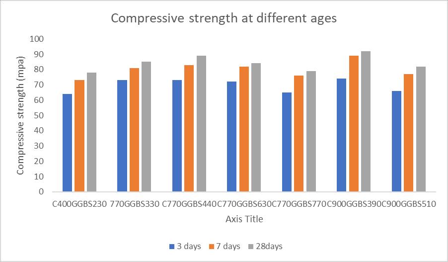 3. CompressivestrengthofmixC400GGBS230with35% GGBS achieved the M70 grade concrete 28 days of curing.