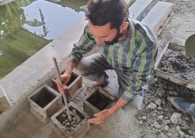 5.1 Batching: Different constituents of concrete are collected and weighed appropriately. The materials to be replaced are also measured and there is proper mixing of materials.Thewater isaddedproperlyto preparea better mixandafterpreparingthemix,themixture istransferred torespectivemoulds.
