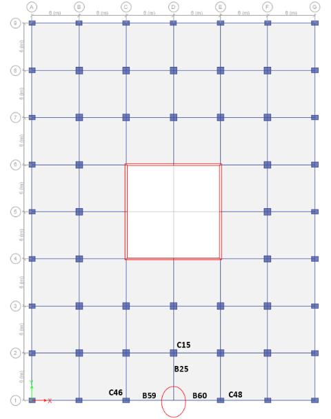 WhenColumnC18isremovedatstorey1,mostcritically affectedcolumnsare:Columns:C46,C48,C15