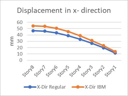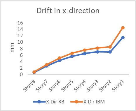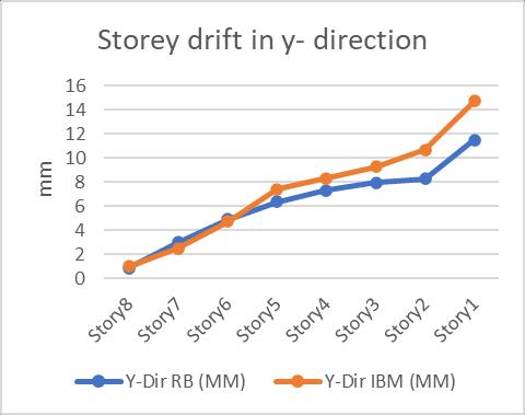 ThegraphshowsthedriftinregularRCCbuildingislessthan thestorydriftinbuildingwithmassirregularityinallstory inx-directionandthemaxstorydriftinregularBuildingis 24.04%lessthanthemaxdriftinIBMbuildingwhereasinydirectionthestorydriftinbuildingwithmassirregularityis observe less than the regular building in 7th story due to massirregularitywhichisapproximately16.75%lessthan theregularbuildingbutbotharewithinpermissiblelimits andthemaxstorydriftiny-directioninregularbuildingis approximately22%lessthantheMassirregularbuilding.