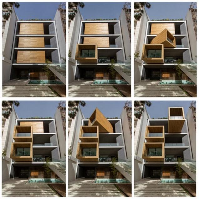 Thehouseoccupies14,000squaremetresarrangedoverfive levels and two underground floors and was completed in 2013. It features swiveling rooms, allowing for a shapeshifting façade, in order to adapt to Iran’s fluctuating temperatures, and to suit the floor plan’s functional requirements.