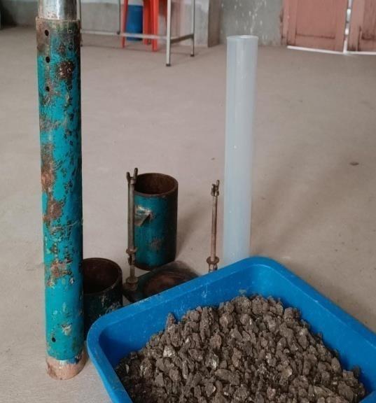 Standard Proctor test was performed to determine the moisture content-dry unit weight relationship according to ASTM D- 698-91. In the proctor test, the soil was compactedinthemoldthathasavolumeof944cm3.The diameter of the mold is 101.6 mm. The soil was mixed with varying amounts of water and then compacted in three equal layers by a hammer that delivers 25 blows to each layer using an automatic dynamic compacter with a hammer is dropping from a height that produce a compactive effort. The compaction test has been performed on soils with different fiber contents (0.5,0.6,0.7,0.8 %), resin contents(0.5,0.6,0.7,0.8 %), both fiberandresin(0.6%)ofdrymass.