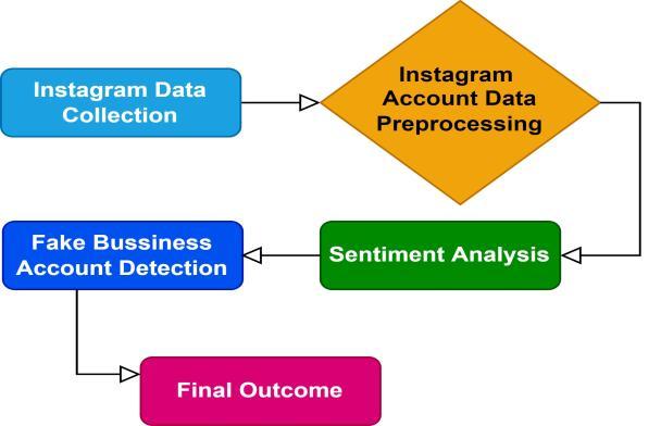 Thissectionexplainstheresearchapproachthatwillbeused. Figure1depictsthemanyproceduresinvolvedindetecting fakers using sentiment analysis. First and foremost, informationfromanInstagramgroupmustbegatheredto identifywhetherornotitisafraudulentbusinessaccount. Thedatawillbecollectedintheformofapublicpostandthe commentsthataccompanyit.Thedatawillbecleansedand allsuperfluoustextssuchaslinks,single-linecomments,and soonwillbeeliminatedduringthepreprocessingstage.Data that has been preprocessed is ready to be analyzed for sentiment. Different algorithms and even lexicon-based analysiswillbeused.Finally,basedonthesentimentanalysis, theprocessingsystemwilldeterminewhetherornotthedata shouldbetransmittedforfakeridentification.Theoutcome willbereflectedbasedonthedetectionreport.