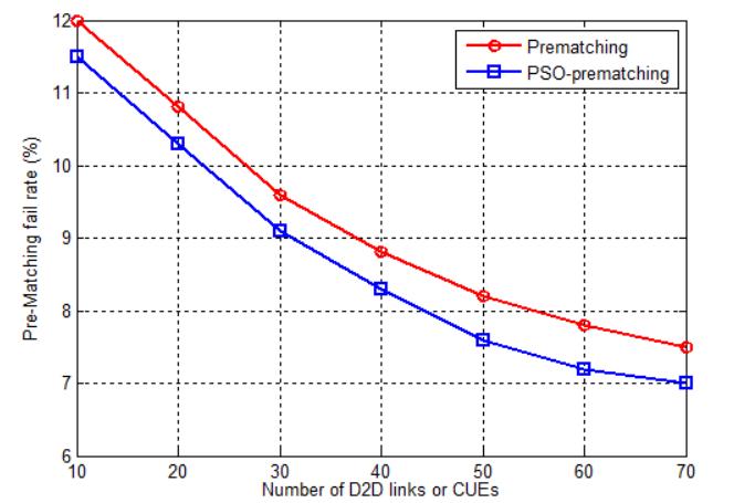 Fig-1:PMFRvs thenumberofD2Dlinksorcellularusers basedonprematchingfailrateandnumberofD2Dlinksor cellularusers.