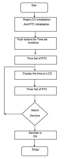 Figure 1 shows the block graph of the framework. It very well may be seen that the framework is isolated into two gadgets.Themainframeworkisalocallyavailableregulator for sanitizer administering. The subsequent framework is siphonstartareconstrainedbyRTCclock.