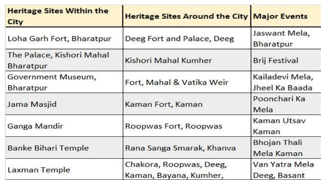 Aim of the study is to analyse scope of heritage and tourismdevelopmentinBharatpurCity,Rajasthan.