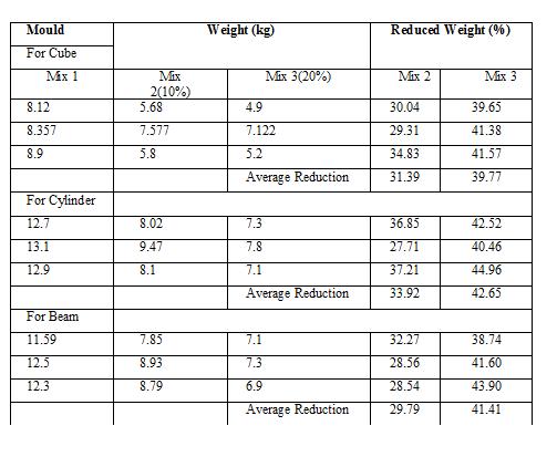 Ithasbeensuggestedthatbecauseblends2and3eachhave 20%offoamaddedtothem,theprocessofaddingthefoam shouldbedoneintwodifferentsteps.Whencomparedtothe regular or standard significant mix, it was shown that lightweight concrete had a reduction in self-weight that variedfrom30.9%to33.92%and29.79%.