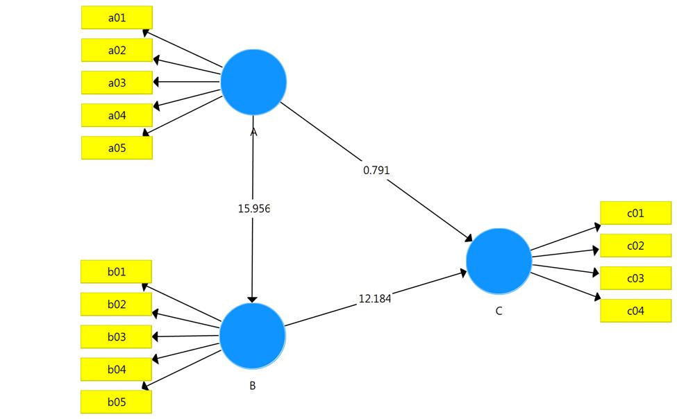 BasedontheresultsofKolmogorf-Smirnovtestanddeterminingtheabnormalityofthestatisticalpopulationdistribution,to testthemodelofthisresearch,dataanalysisbystructuralequationmodelingbasedonvariancewithSmartPLSsoftwarewas used