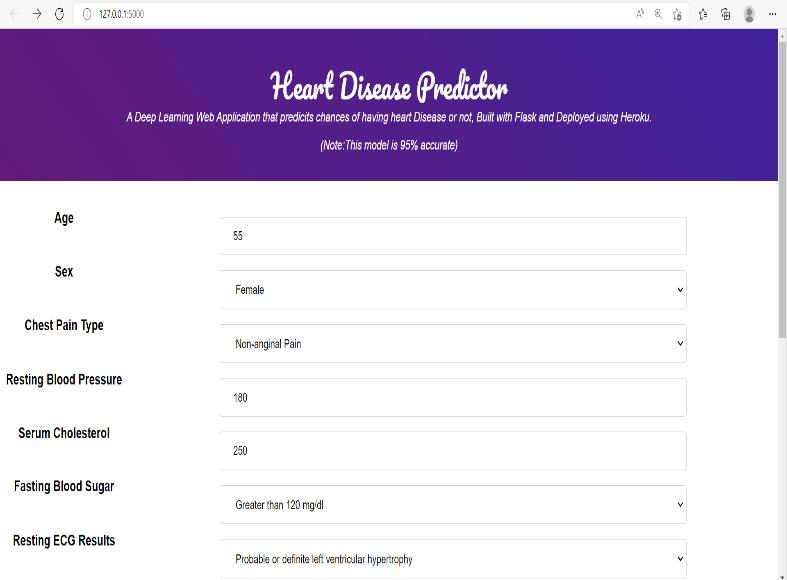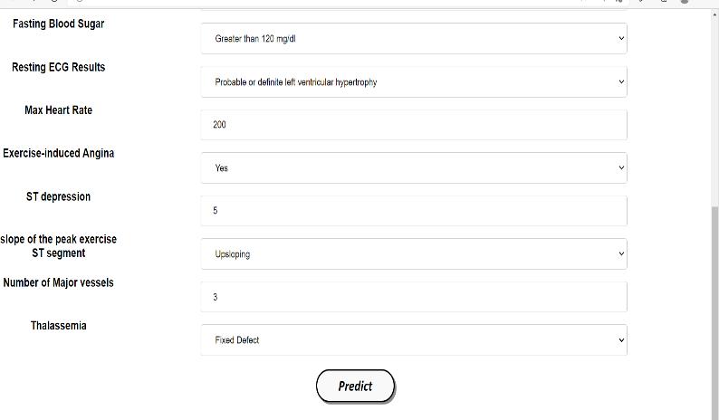 Themodelistestedusingpatientreal-timedata.When patientinformationisenteredintothesystem,itdetermines thelikelihoodthatthepatienthasaheartproblem.