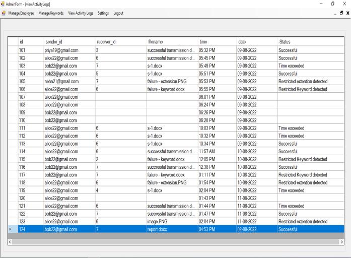 Here, the system allows the transmission and the activity logsarerecorded.