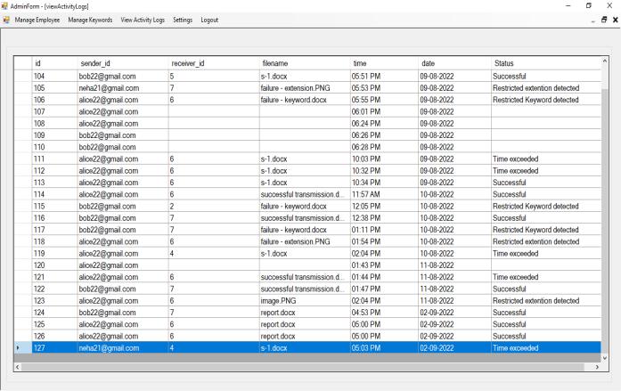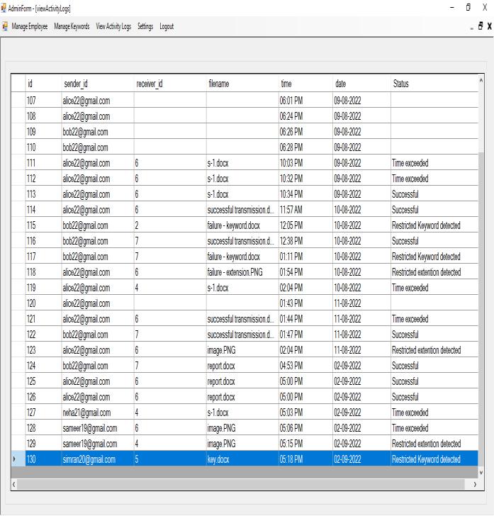 The system constantly monitors the activities of employeestocheckwhetherthereisanymaliciousactivity or not. The employee can send files to anyone inside or outsidetheorganization.