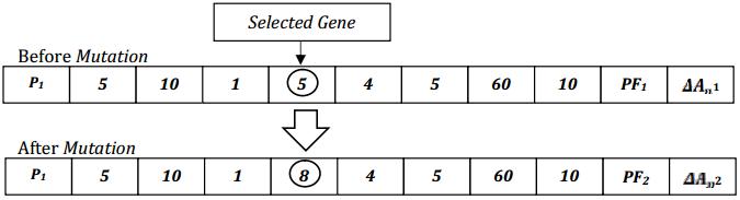 Afterperformingcrossover,Aonegenemutationprocess, issuggestedandcarriedout,basedonspecificconstraints,to allownewchromosomestobecreatedasshowninFig-5.