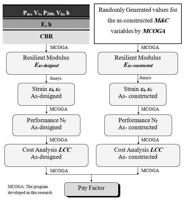 Then cost analysis is derived from calculating the pay factor as shown in Fig-2, and the fitness function of the optimization process to maximize the difference between equivalentuniformannualcostAnfortheas-designedandthe as-constructedpavementsΔAn