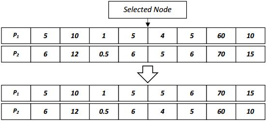 New populations’ generation is performed in two subsequent processes: selection and reproduction. The selection process is carried out to choose a pair of chromosomestoperformthe reproductionprocess [5]. In thisresearch,"roulettewheel"selectionandelitismareused. Chromosomeswithhigherfitnesshavemoreprobabilityof selection. Then these selected chromosomes sorted descendingduetoitsfitness ΔAn.Afterselectingapairof parentchromosomes,thecrossoverprocessiscarriedout andsuggestedinourresearchasshowninFig-4.