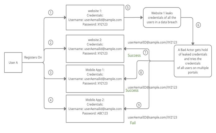 A bad actor gets hold of userâs credentials leaked from a website and tries the same set of credentials on different websites for further access on userâs data. Traditional defense mechanism deployed by web portals fail to defend against this attack as itâs a very silent, slow and evade the signature-based rules.