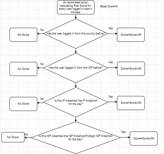 An automated script will run every ânâ minute and will analyze the rows of login event table for past ânâ minutes andcalculateariskscorebasisonbehavioranomalyfactors: