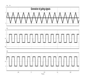 Fig. 3: shows the waveforms of the gate voltage (Vg1 & Vg2),theDCsignal(Vdc),andthecarriervoltage(Vtri)
