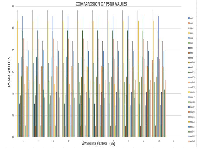 Chart -3: PSNRforbrainMRIfordifferenttypesoforders ofdBwaveletfilters