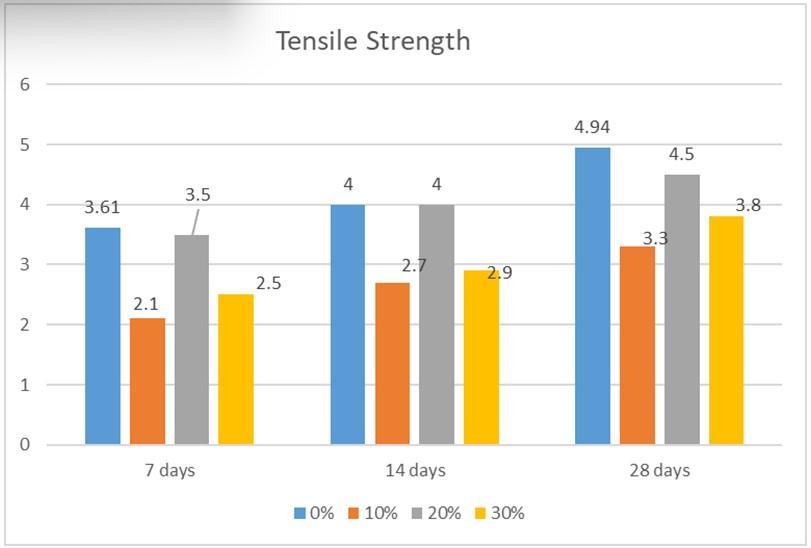 Concrete isn't generally anticipated to repel the direct pressure because of its low tensile strength and brittle nature. still the determination of tensile strength is necessary to determine the cargo at which the concrete members may crack. The cracking is a form of tensile failure.Splittensilestrengthupto70isscoredforablendof Wasteplasticupto90(asareliefforcoarseaggregate)in concrete.