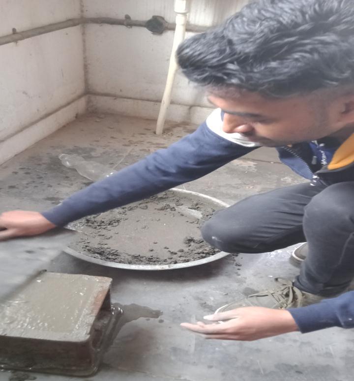 Samplesofconcretecellsofsize15cmx15cmx15cmwere poured to calculate the compressing strength of concrete. Spherical samples dia. - 15 cm and length- 30 cm were molderedtofindtheconcreteflexiblestrength.Theperiodof curingis28days.