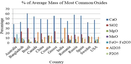 Fig – 4: ChemicalCompositionsofMostCommonOxides ofCountrywiseLRFS(%ofAverageMass)
