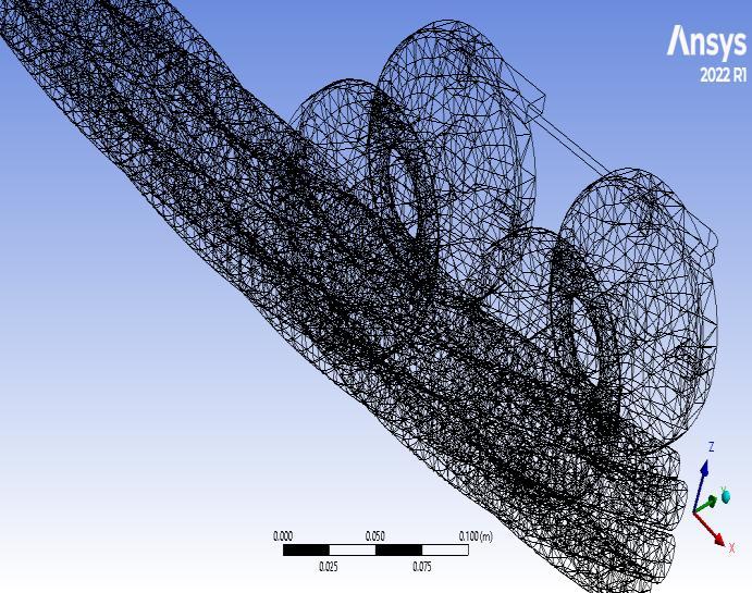 Fig. 3 WireframeViewoftriangulartypeofmeshingis doneinANSYSsoftwareforRopewayCableAnalysis