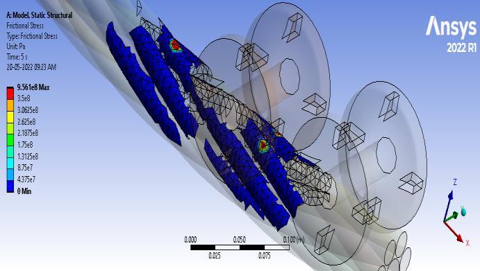 Fig. 10 FrictionalStressgeneratedinRopewayCable Analysis