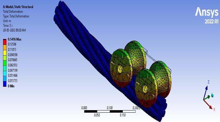 Fig. 4 TotalDeformationgeneratedinRopewayCable Analysis