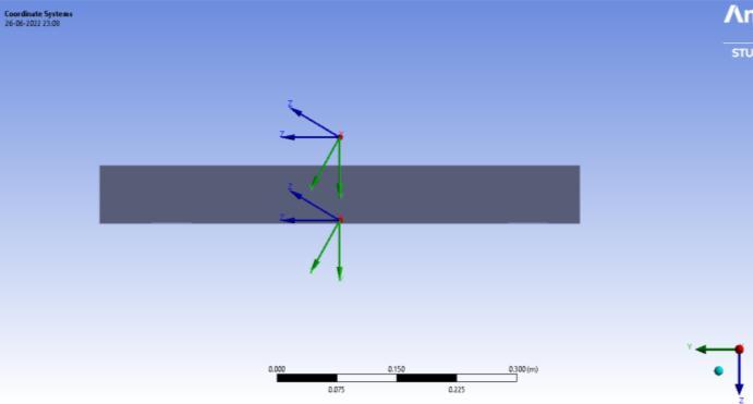 Ondetailedstudies,foraparticularloadconditionforour analysiswhenthemachineryismovingalonga30-degree inclinedpath,thesameloadistobeappliedwith30-degree inclinationwithrespecttotheverticalaxis(yaxis).Forthe same reason one more axis is created with 30 degrees of inclination with the vertical axis as like the above given figuredemonstrates.