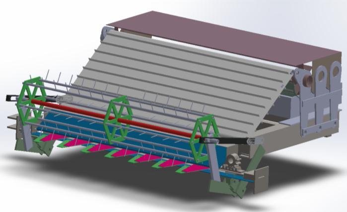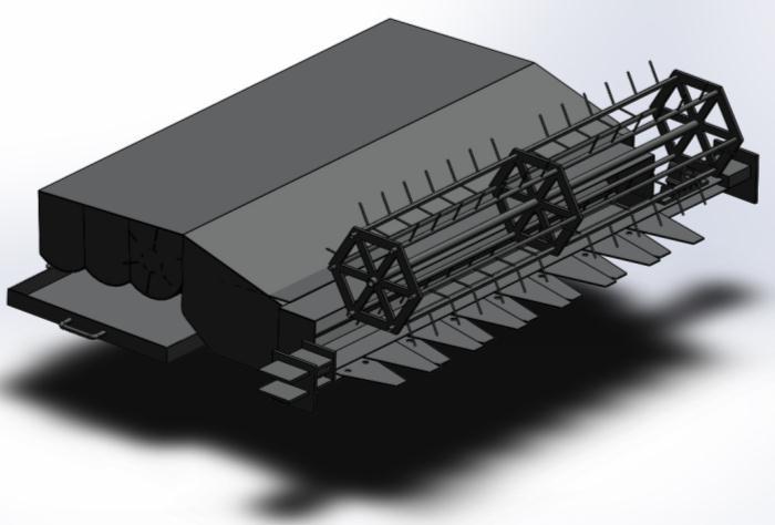 Figure 5 depicts the pre-designed assembly of harvesting machinerycomponents.Forpreliminaryloadestimates,this equipment is considered to be made of alloy steel. Each portionofthisapparatusisbuiltinsuchawaythatitmaybe made entirely of sheet metal, dramatically lowering the manufacturing costs. It was made a point throughout the designprocesstoavoidusingfilletorcurvesthatwouldbe incompatiblewithsheetmetalformingmethods.