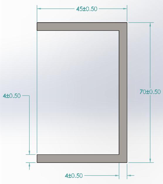 Similartothatillustratedinthefigures2and3,forthecrossmembers,thecross-sectionaldimensionsweregiven26mm, 54mm and a thickness of 4mm respectively whereas the lateraldimensionsweregiventhevalueof790mmallwitha toleranceof0.5mm.