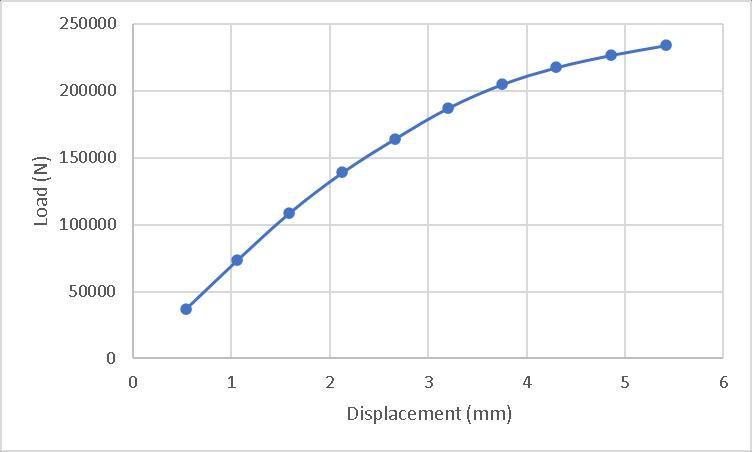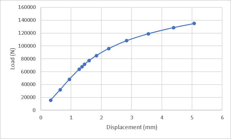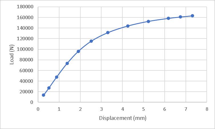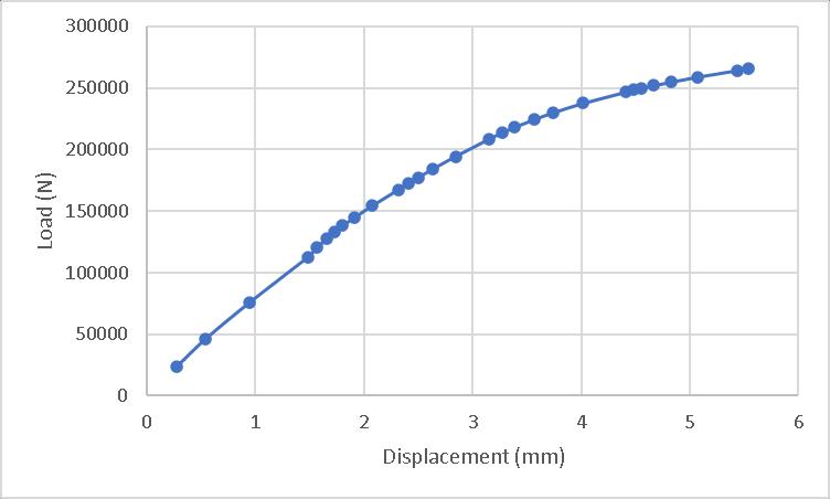 Theresultsshowedafailurewithdisplacement1.0577mm under73.423kNload.Theloaddisplacementgraphisshown inChart1.