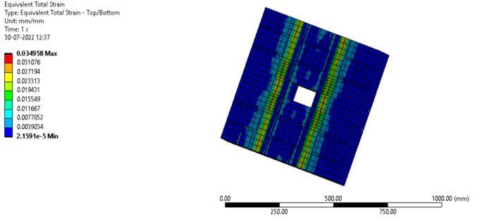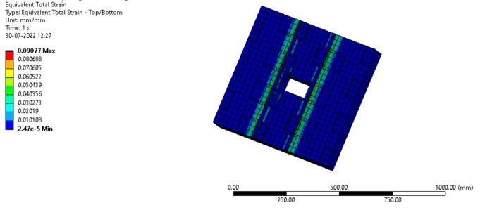 Fig -9:Equivalentplasticstrainofwallette strengthenedwithcrosspattern
