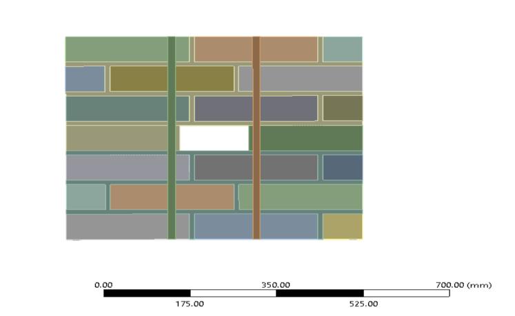 In this study, masonry wallettes were strengthened using geotextile on both sides and mainly two patterns that is vertical and cross were considered. Both un-strengthened and strengthened wallettes were taken for the analysis to compare the results. Since the analysis was done to understandbothin-planeandout-of-planeperformancestwo setsofeachwalletteshowninFig1weremodelledinANSYS.