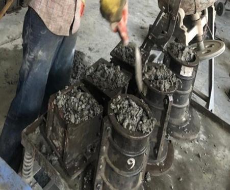 An electrically drum operated mixer was used to mix the concrete. Water was sprayed inside the drum to provide moisture.Themixerwasfirstfilledwithcoarsesediments andbrokenceramictilesthanitwasrotatedtoensurethat the components were mixed evenly. After that, sand and copperslagwerecompletelymixedintothemixture.Togeta uniformdrymix,thedrymixwasrotated for 2-3minutes after adding cement and GGBFS. To obtain a workable concrete,theneededamountofwaterwasaddedtothedry mix and the mixture was thoroughly rotated to get a workableconcrete.