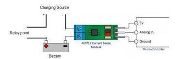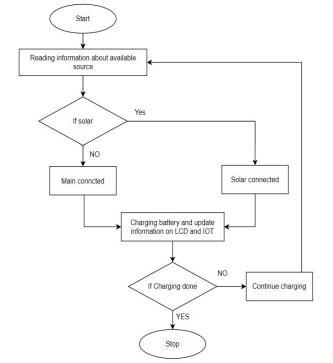 Switching section and the sensors are interfaced with a microcontroller. Here, Microcontroller is main heart of the system. The switching action between differentsourceshappentobeautomaticusingrelay,the triggered signals are sent from microcontroller. Finally, the current consumed for charging the battery. In this method we are using a current sensor ACS712 for monitoring the charging level. This system consists of current sensor, Relay and microcontroller. ACS712 is currentsensorandinourimplementationIt’sinterfaced with microcontroller. Microcontroller will read from analogpin.Oncechargingloadwillbeapproximatezero, at that time battery will be full charge. IoT is implemented by interfacing a Wi-Fi module (ESP8266), and connecting to internet. Amount generated based on the usage, which is updated on IoT and LCD. About information for charging slot available status related information will be update on Esp8266 Wi-Fi microcontroller