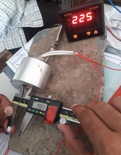 Process:A2KWcartridgeheaterrodisusedtoheattherotorbore.Therodisinsertedintotherotorboreandpowerisapplied fortimetoreachtherequiredtemperatureatwhichthermalexpansionofrotorboreisobtained.Inthisprocesstriedtoexpand therotorboreatvarioustemperature.Temperatureismeasuredbythermocouple.Thermalexpansionismeasuredbydigital verniercaliperhavingleastcountof0.01mm.