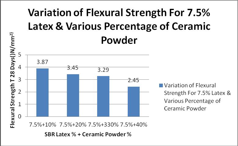 4. At7.5%SBRlatexandvariouspercentageofceramicpowdertheflexuralstrengthiscalculated.