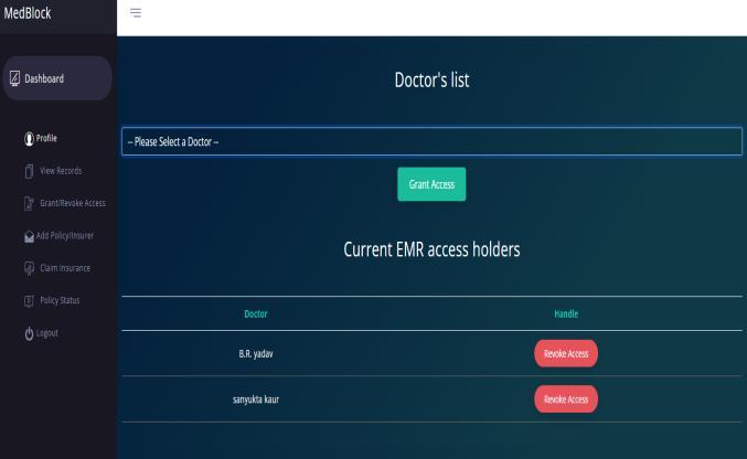revoke the access from that doctor. Granting/revokingaccessrequiresethers.