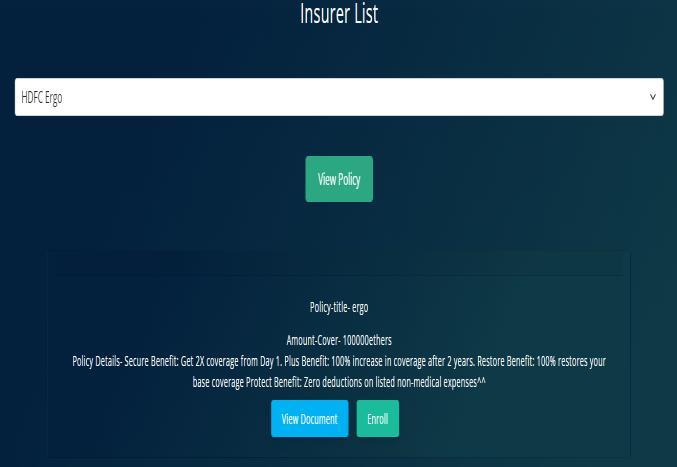 Insurer can add policies to his account, patients can enrollforthesepoliciesandclaimthem.