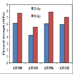 Chart-3:comparisonofflexuralstrengthofGPCcontain 35%alkalineactivator(Nathet.al)