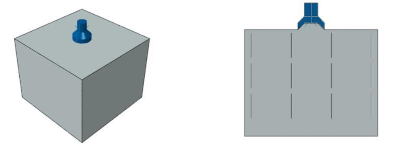 Anappliedpressureof600kPaisappliedatthetopsurface of the conical shell footing. The assembled model and section view of conical shell footing reinforced with onelayergeocellisgivenbelow;
