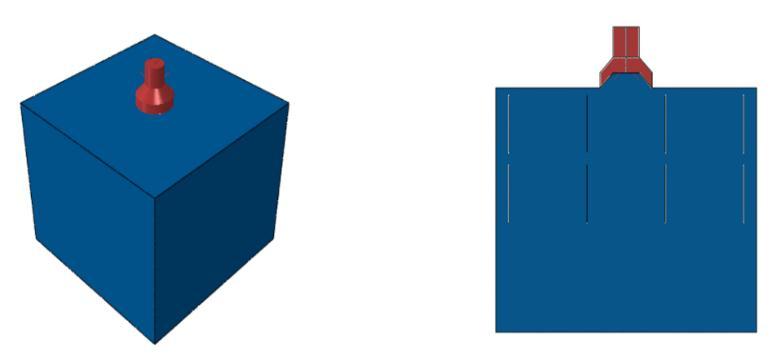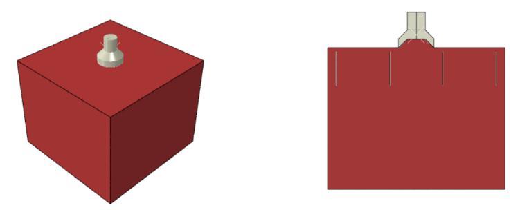 Fig -4 Assembledmodelandsectionviewofgeocell reinforcedconicalshellfooting