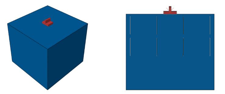 The geocell layers are placed on two layers below the footing. This way, the settlement can be reduced for a weaksoilbase.