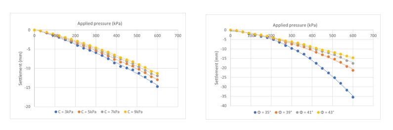 Table – 6 Effectofvaryingcohesionandfrictionangle valueonisolatedfootingreinforcedinone-layer