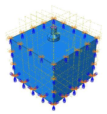 The base of the footing is provided with fixed support condition and all the other four sides are provided with rotation or displacement. A contact tie is given to the footing and soil bed in order to provide smooth flow of loadtothefoundationsoil.